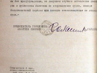 5. Предложить начальнику 17-й пристани и зам. начальника «Рейдтанкера» по сухогрузу прекратить практику подачи судов под эваконаселение с опозданием и уход их без предупреждения, не допуская случаев оставления пассажиров с купленными билетами на отправляемое судно, наведя большевистский порядок при посадке эваконаселения на отходящие суда.