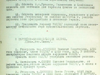 12. Предложить горкому ВКП(б) включить в свою номенклатуру начальников бюро продовольственных карточек.