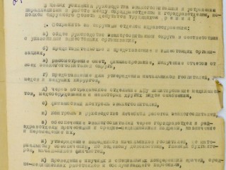 В целях усиления руководства эвакогоспиталями и устранения параллелизма в работе между Окрздравотделом и Горздравотделом, исполком Окружного Совета депутатов трудящихся решил: