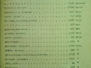 Сведения пока еще не полны. Всего по городу послано 1230 посылок весом каждая 20 - 25 кг (средний вес). Если из посланных вещей составить индивидуальные подарки, то их будет примерно 17000 подарков.