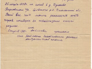 Погиб также и муж Антипов Семен Иван. 12 января 1942 г. его мобилизовали, а уже 25 марта 1942 г. он погиб в д. Дунаево Верховского с/с Белевского р-н Смоленской обл.