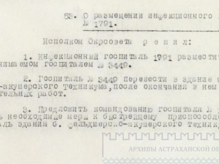 3. Предложить командованию госпиталя №1791 принять необходимые меры к быстрейшему приспособлению под госпиталь здание 6. фельдшерско-акушерского техникума.