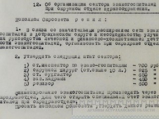 12. Об организации сектора эвакогоспиталей при окружном отделе здравоохранения.