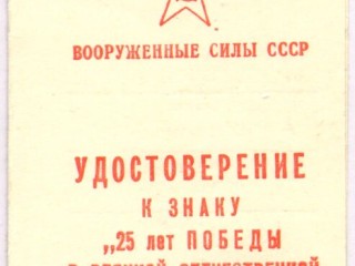 Удостоверение к знаку «25 лет Победы в Великой Отечественной войне» Филипченко Н.В.